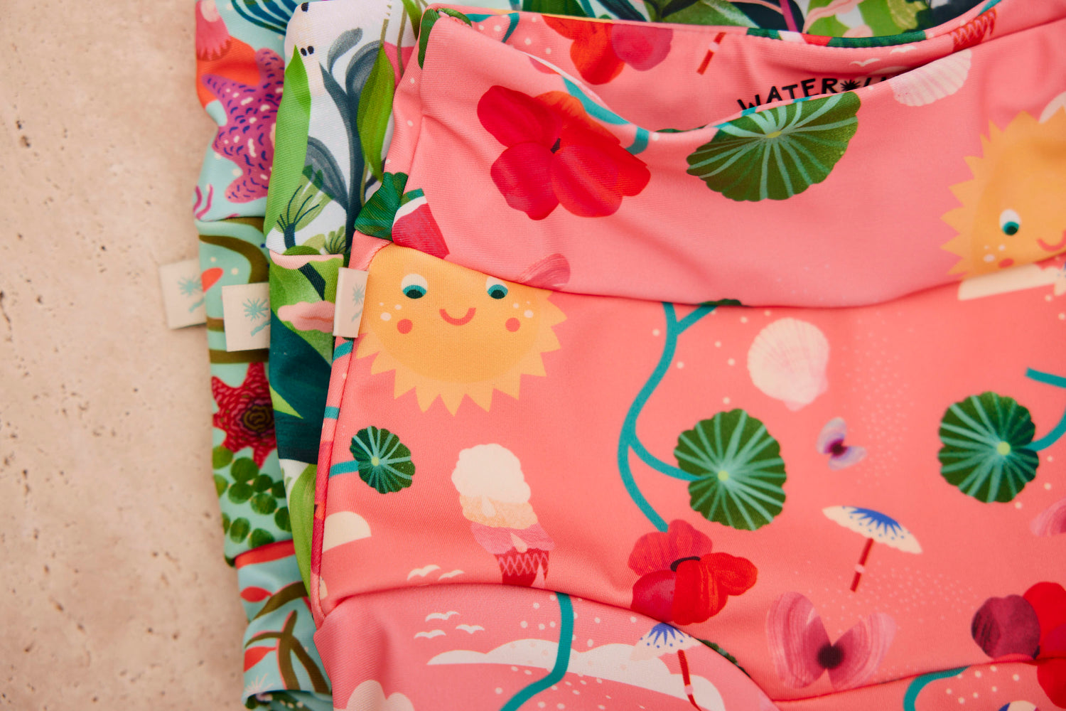 We’ve started with reusable swim nappies that make you smile and hold up under life’s little tests – from salty swims and playing in the sand to accidents and washing machines. We’ll keep creating consciously, bringing you thoughtful swimwear that empowers feel-good experiences and leaves you excited for the next swim. Because we’re here for those who live in the water.